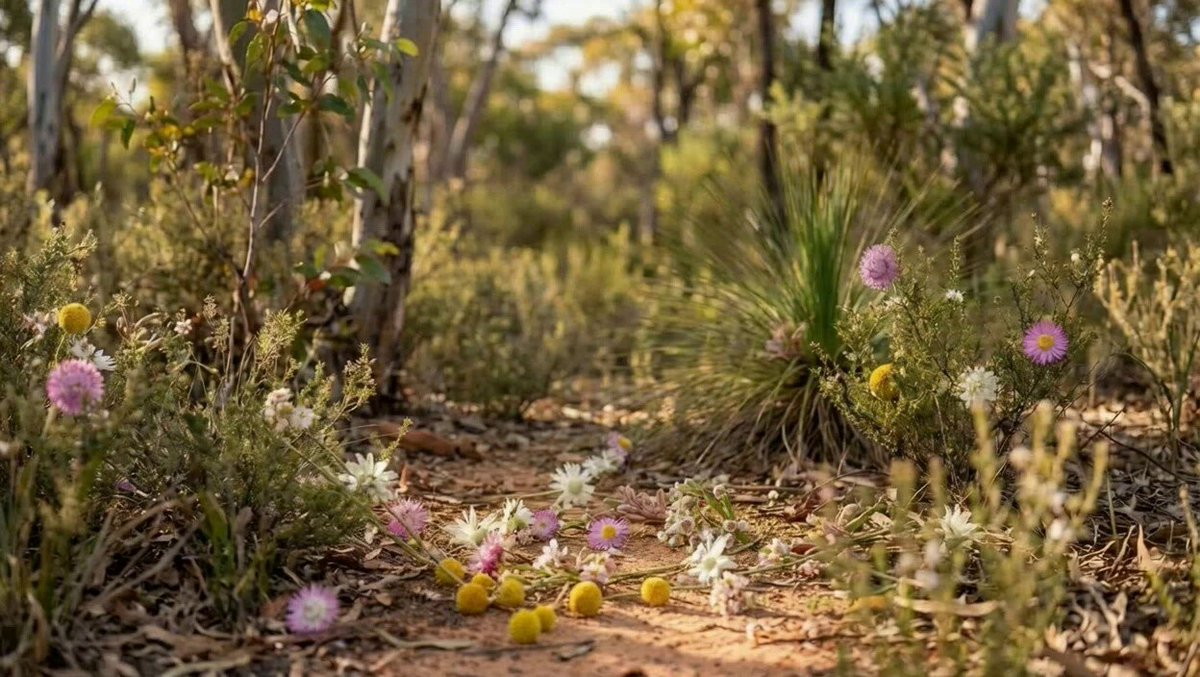 A detailed video prompt featuring wind-driven plants and blossoms that harmoniously drift together to assemble a final geometric shape.