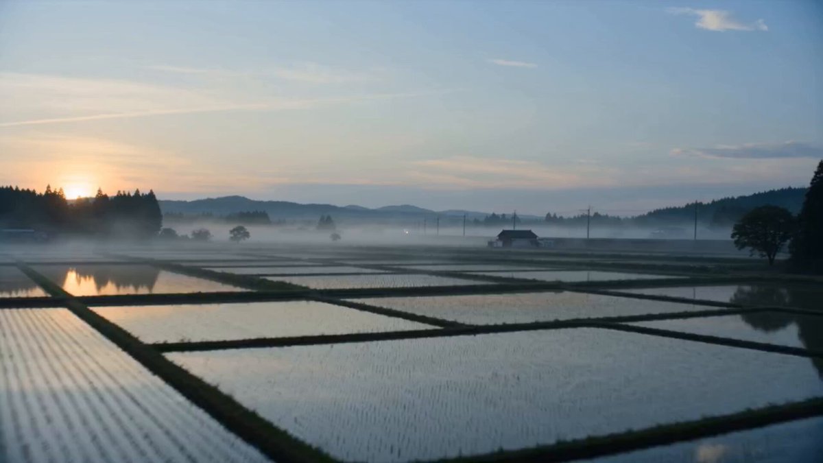 An immersive film-style script depicting a high-velocity chase alongside a train through rural Japan at daybreak.