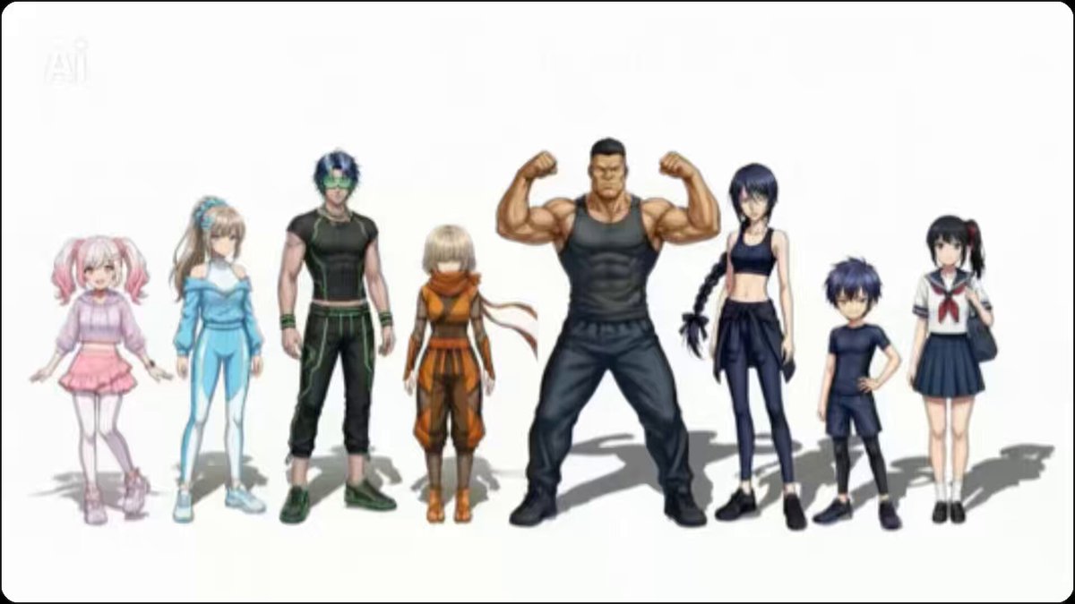 Generate a dynamic anime opening featuring a high-speed battle sequence while maintaining visual consistency for eight specific characters as they swap positions. This prompt is optimized for replicating classic action-packed character introductions with seamless transitions.